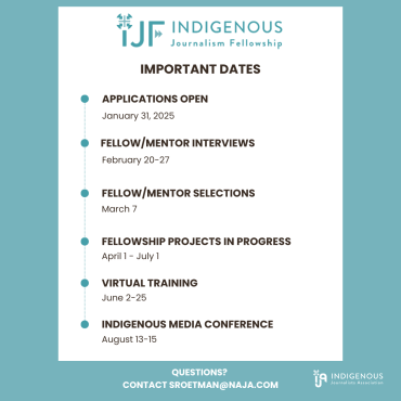 The Indigenous Journalists Association is now accepting fellow and mentor applications through Jan. 31